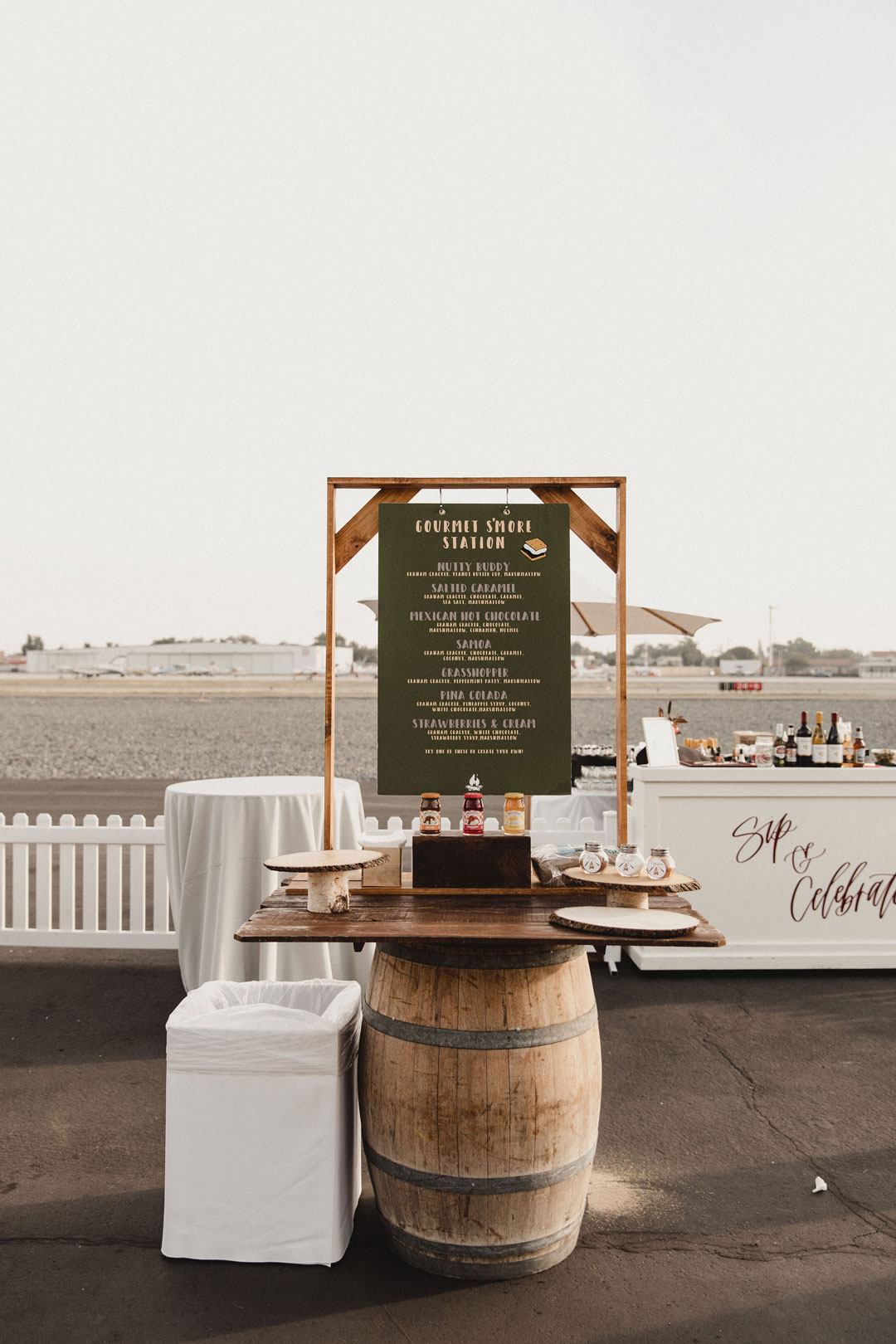 A mouthwatering dinner buffet was ready to be devoured while toasts to the bride and groom were being made after their return from the helicopter ride. Guests were free to choose from Smoked Beef Brisket, Pork Loin, BBQ Chicken, Candied Sweet Potatoes, Panko Crusted Mac n’ Cheese, Southern Chopped Salad, and Cornbread Muffins. To end the night, friends and family indulged themselves at the Gourmet S’more Station where you can customize your s’more with toppings like Reese’s, Hershey’s Cookies and Cream Bars, jams and more.