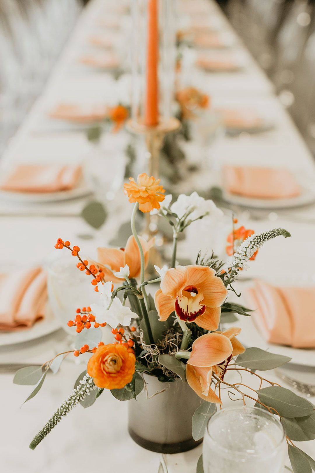Venue: Hangar 21 // Catering & Bar: Jay’s Catering // Planner: Events by the Cea // Photography: Jessie Schultz Photography // Florist: Bella Blooms