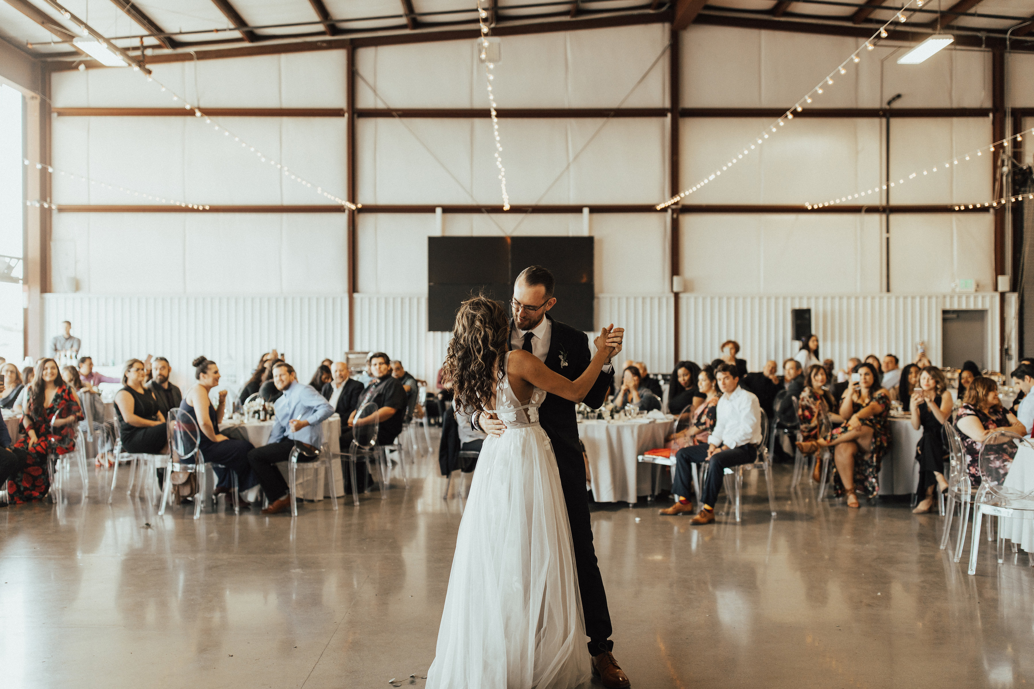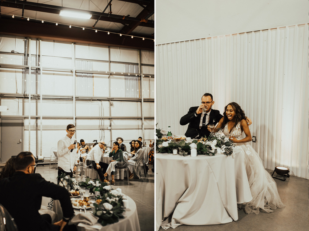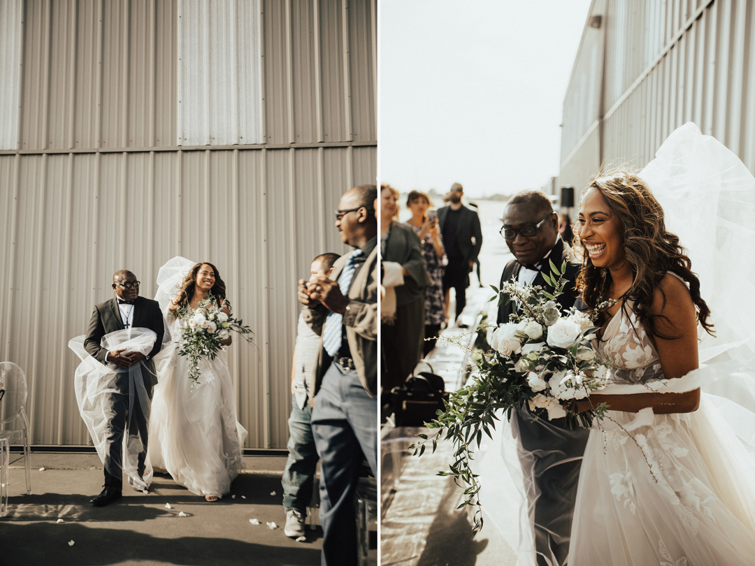Venue - Hangar 21 // Food & Bar - Jay’s Catering // Coordination & Floral - Willow and Lace Company // DJ - Night and Day DJ // Photo - Christy Johnston // Dress - bhldn
