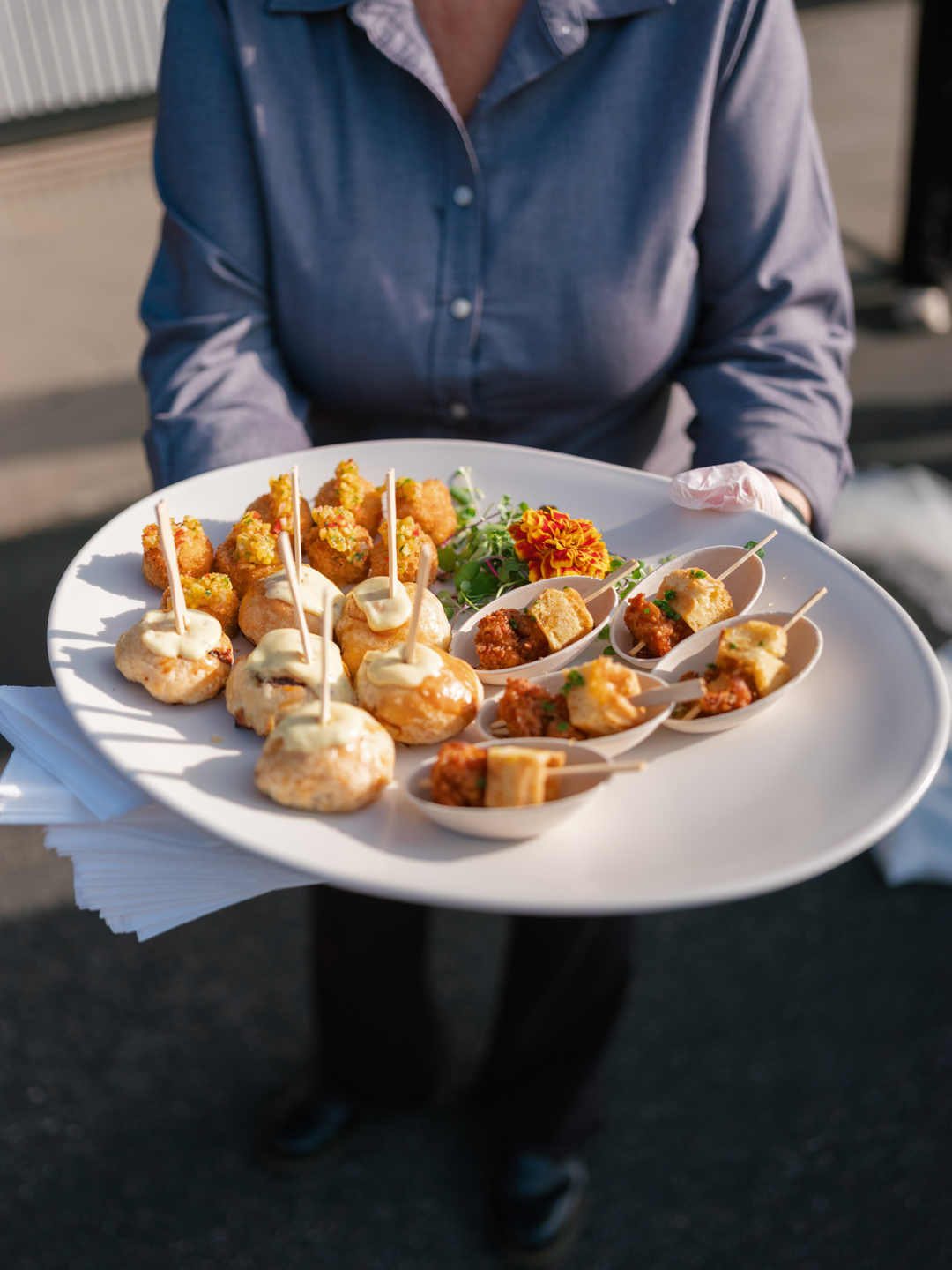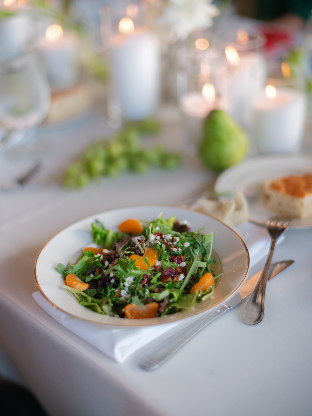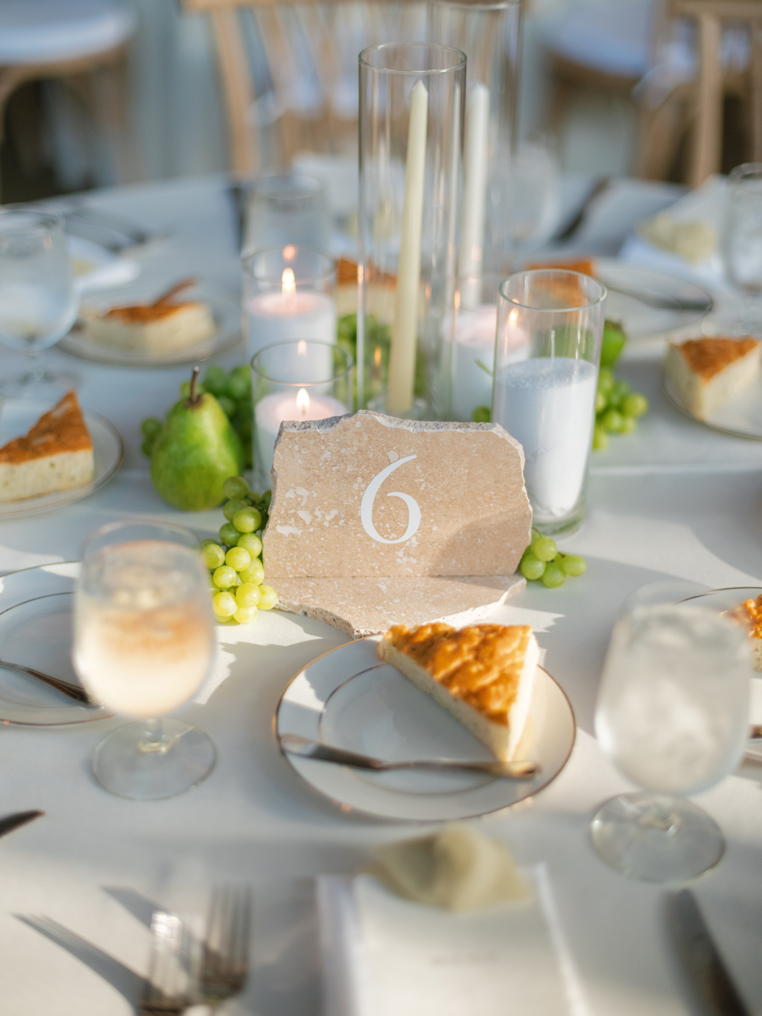 Crab Cakes, Fried Chicken and Waffle Bites, and Filet and Wild Mushroom Wellingtons were tray passed around the tarmac while the bar served up Pineapple Margarita and Lychee Pear Martini signature drinks. White roses topped cocktail tables, and a modern white lounge offered a comfortable and stylish place for guests to sit back. While everyone mixed and mingled, the newlyweds enjoyed a helicopter flight over Orange County touching down just in time for the reception.
