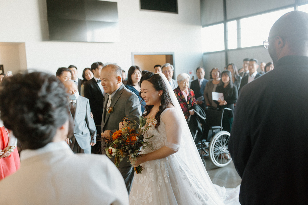 Venue: Hangar 21 South // Catering + Cake: Jay’s Catering // Photographer: Jerome Park Photography // Planning: Ah Love Events // Florist: P.S. Buds // HMUA: Kelly Zhang Studio