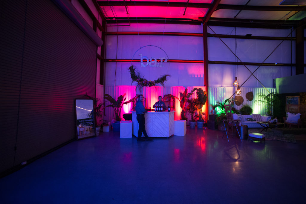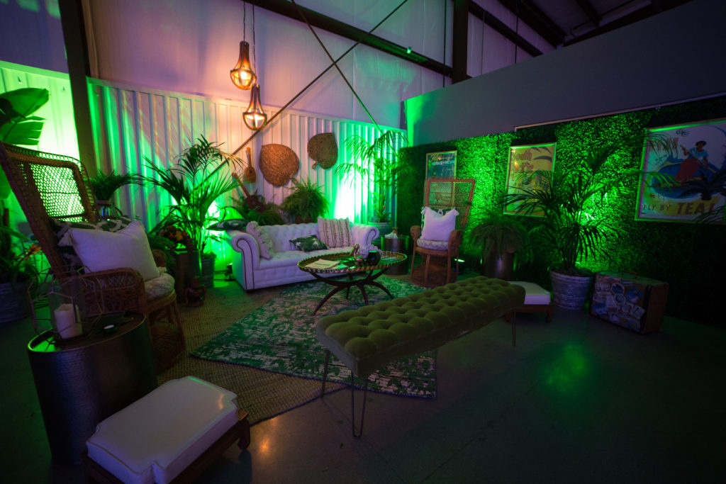 For Some Enchanted Evening, we’d like to take you on a trip to an island in the South Pacific where the air is warm, the sky and oceans are blue, and beautiful greenery surrounds you. The cocktails and fun will overflow, and you’ll wish the night would never end. But for this night, you won’t have to travel very far because it all takes place at Hangar 21.Tropical-inspired lounges and entryways, created by Sundrop Vintage and Green Effect, set the theme.