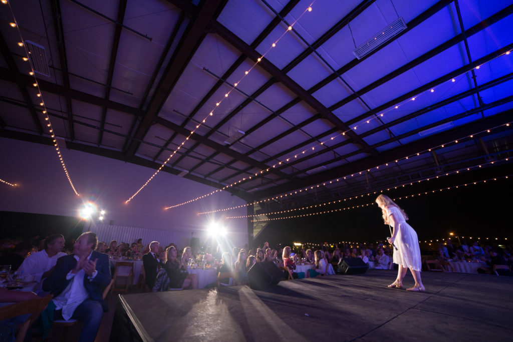 The curtain raised (or shall we say- the hangar door), and the show began. A custom plated dinner started with a refreshing pomegranate salad, followed by the main course, an island native, Huli Huli chicken- marinated in a pineapple juice mixture and grilled to perfection. Yumm! And no meal is complete without a perfectly-paired dessert, a pineapple upside down cake and pina colada key lime dessert shot to finish.