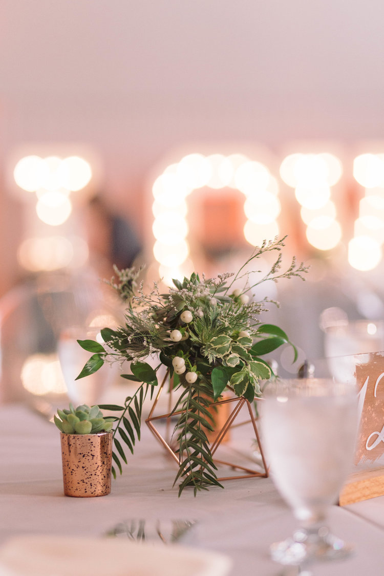 The evening began with an indoor ceremony-the stunning backdrop would be repurposed for their sweetheart table. I do’s were exchanged and their 120 guests were invited out to the Tarmac where they were greeted with a summer breeze, signature cocktails, and tray passed appetizers- crab cakes topped with a mango papaya salsa and crisp, cold vegetarian springs rolls. As they enjoyed the runway views with planes and helicopters in the background- the team inside worked to transform the space for reception. Viola!