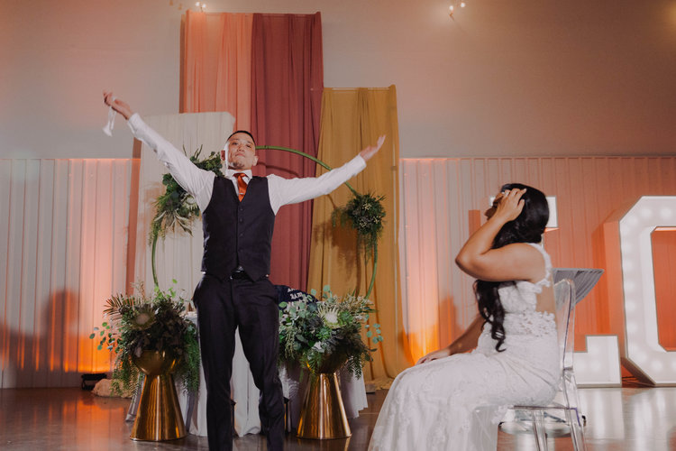 Venue - Hangar 21 // Food & Bar - Jay’s Catering // Coordination - Peonies and Bliss Events // DJ - Awthenik Vibes // Photo - Nikki Medina // Video - Marquee Films // Floral and Cake- Classic Flowers and Confections