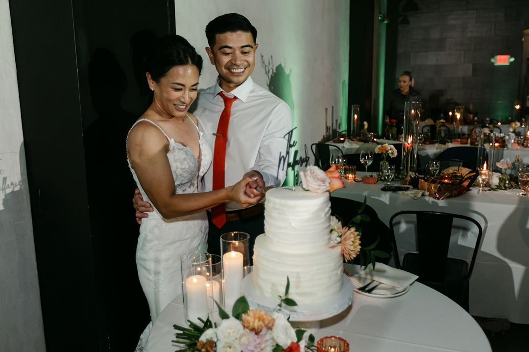 Venue: Hangar 21 South // Catering + Cake: Jay’s Catering // Photographer: Chrissy Gilmartin Photography // Planning: Unoaked Events // Florist: Bella Blooms // HMUA: Luong Lasting Team