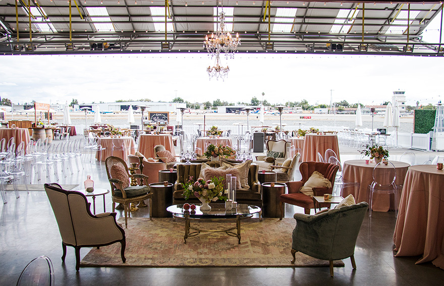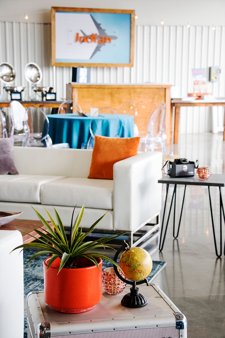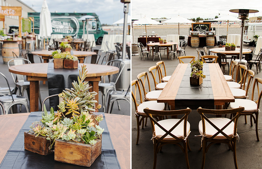 The Tarmac was decked out in beautiful furniture by Classic Party Rentals and unique centerpieces by Portobello Junction. Here we showcased some of our favorite food stations including Gourmet Street Tacos, Flatbread Pizza, S’mores, and a special appearance by our favorite food truck, Mess Hall Canteen!